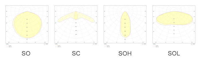SC – оптика для освещения путей эвакуации (коридоры, узкие проходы). Применение оптики SC позволяет в 1,5-2 раза увеличить дистанцию между светильниками, за счет этого сократить требуемое количество светильников и бюджет проекта. Код для заказа: DP183-2455