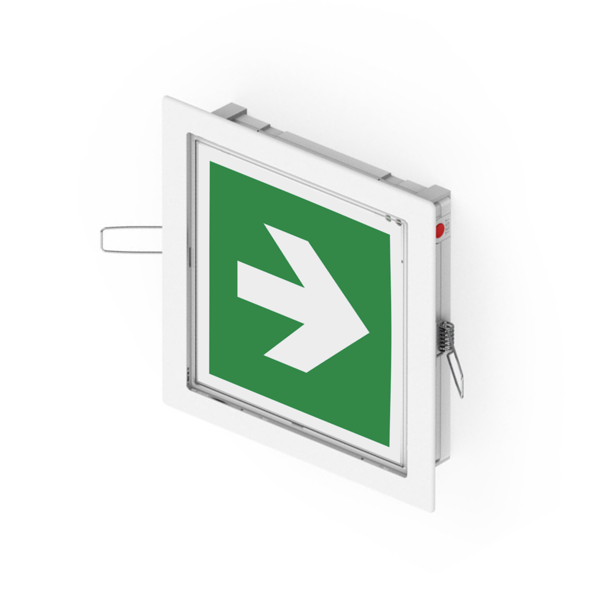 Эвакуационный указатель, встраиваемый в стену указатель, световой казатель, указатель эвакуационного выхода, пожарный указатель.